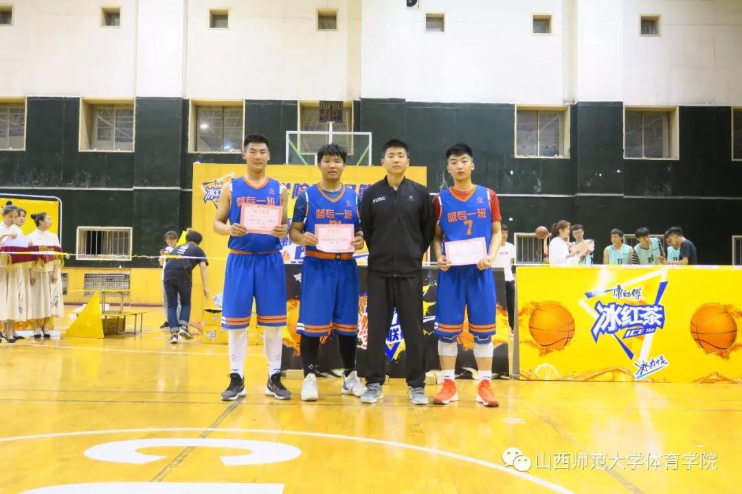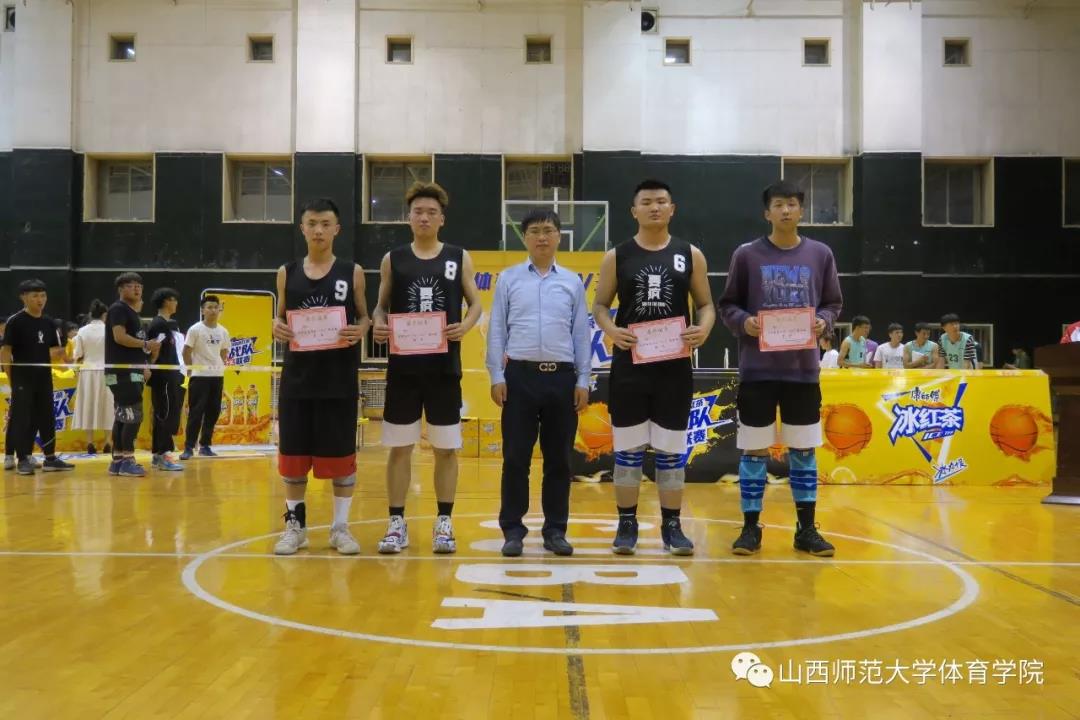 为了纪念五四运动100周年和新中国成立70周年,进一步丰富校园文化生活,打造校园精品活动,院团委员工会主办的2019年3V3篮球比赛,经过两天激烈较量,4月25日晚上19:00,在304永利集团综合馆二层举行了决赛暨颁奖仪式,院团委副书记程祖浩老师、国家级篮球裁判、青年教师李恒老师,青年教师张夏雷老师参加。参加本次比赛的34支队伍150余名球员也观看了决赛。文理1603班杨浩、文理1702班李启瑞、体教1603班赵伟、文理1702班李飞扬担任决赛的裁判员。