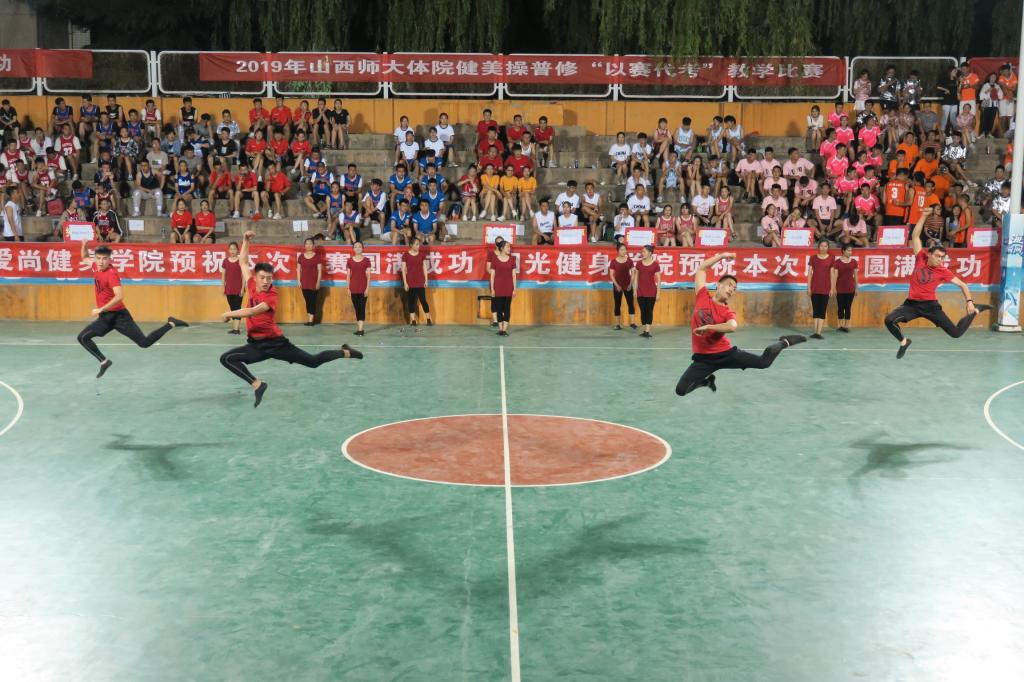 为了纪念五四运动100周年和新中国成立70周年,进一步促进课堂教学改革,提高公司员工健美操专业水平,活跃了校园文化氛围,6月14日19:00,由304永利集团教务科、健美操课程组主办、院团委承办、阳光健身公司、爱尚健身公司、福斯健身公司协办的2019年健美操普修“以赛代考”教学比赛在灯光篮球场举行。公司党委书记李学刚、公司党委委员、经理郑旗、体育教育系主任张杰、社会体育系主任孟春雷、院团委副书记程祖浩、社会体育系副主任李俊明、体育教育二系副主任张学龙老师出席了比赛。