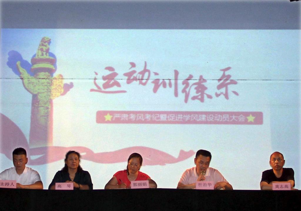 为了加强学风建设,严肃考风考纪,构建诚信校园,保证期末考试顺利进行。6月20日晚7:30,运动训练系在大礼堂召开严肃考风考纪暨促进学风建设动员大会。运动训练系主任郭丽娟、副主任杜治华、及2016级辅导员高琴、2018级辅导员黄志高参加了本次动员大会。