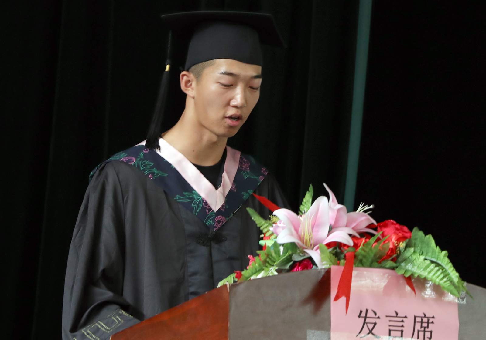 体教1504班王鹏程同学代表2019届毕业生进行发言
