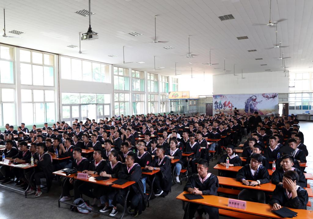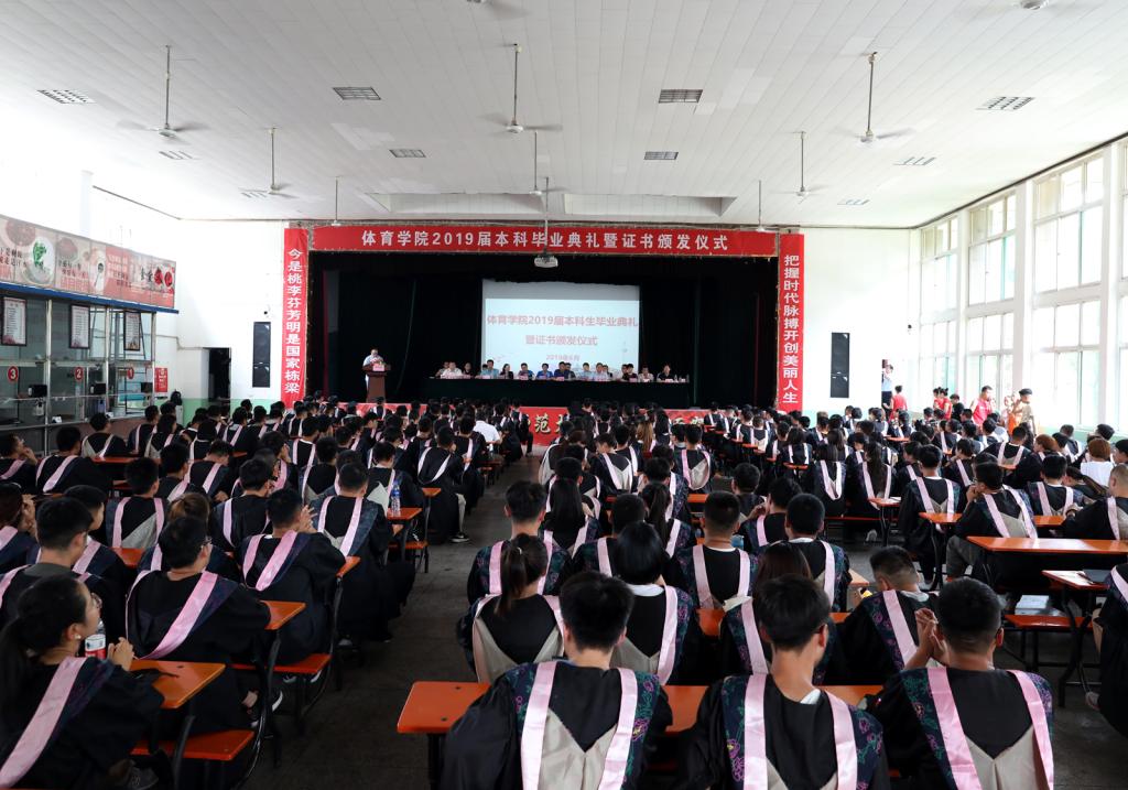随后,体教1504班王鹏程同学代表2019届毕业生进行发言。他回顾了大学四年学习生活的点点滴滴,并代表15级全体毕业生向辛勤培养、精心哺育自己的母校和老师们表示衷心的感谢,也表达了对老员工活的真实感受和恋恋不舍,并祝福全体毕业同学前程锦绣,鹏程万里。接着,体育教育系副主任张学兵老师代表教师发言,他首先对即将走向新征程的毕业生表示祝福,他也希望同学们能够牢记习近平总书记对青年老员工的殷切嘱托,要勤学修德明辨笃实,勇于担当时代重任,在未来道路上要坚定理想信念、努力拼搏、不畏艰难、自强自信。