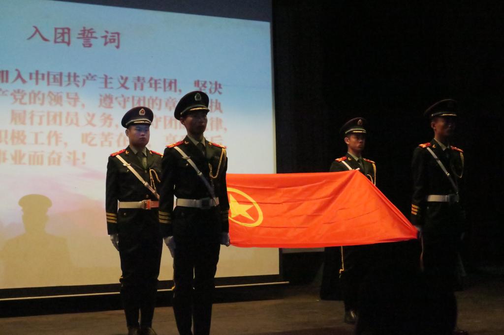 会议在庄严的国歌声中拉开序幕。首先,全体同学共同观看了中国共产主义青年团和党团关系的纪录片,加深了同学们对中国共产党与中国共青团的理解。