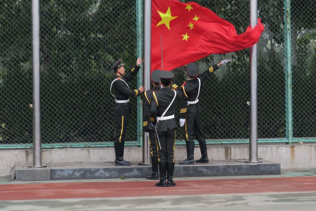 304永利集团国旗护卫队队员护送着国旗,踏着整齐的步伐走向升旗台,在雄壮的国歌声中,鲜艳的五星红旗冉冉升起,迎风飘扬,全体师生面向国旗行注目礼,表达最崇高的敬意。