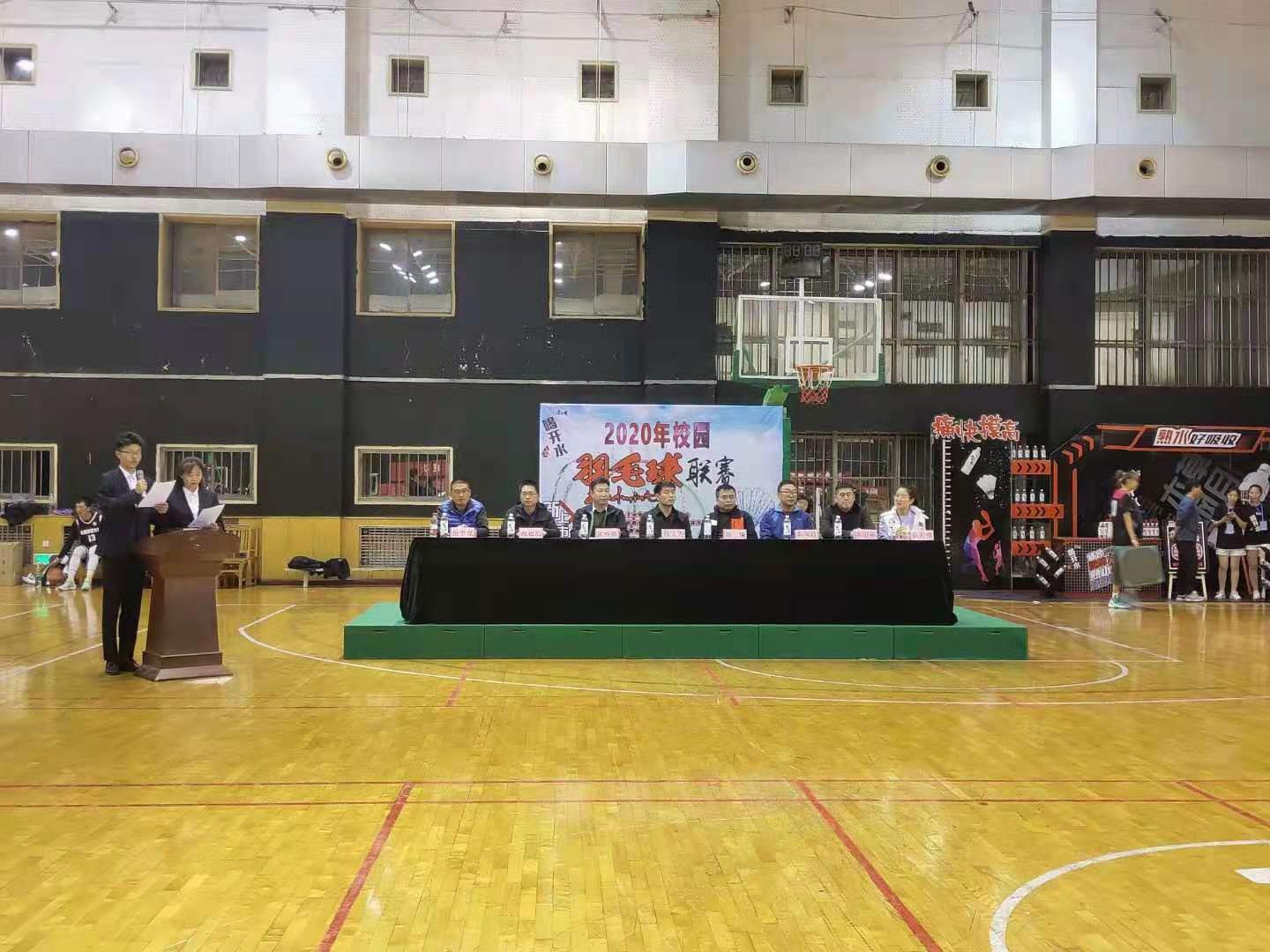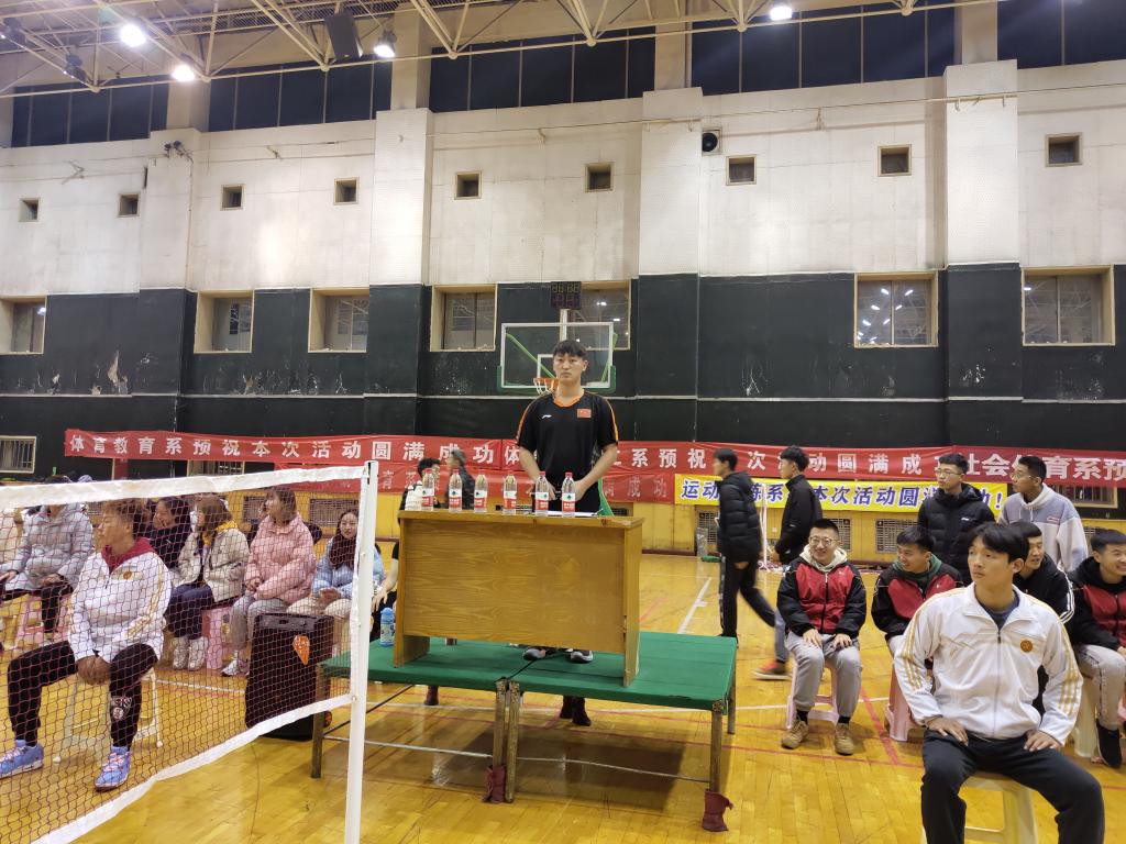 11月16日晚19:00,校园羽毛球联赛举行开幕式,公司党委副书记张大为、教务科科长冯瑞、社会体育系主任孟春雷、体育教育二系主任李向前、院团委副书记程祖浩、社会体育系副主任李俊明、体育教育二系副主任张学龙、大赛仲裁委员会总裁判长谢宏梅参加。院团委副书记程祖浩致开幕词,运动员和裁判员分别进行宣誓,随后,由公司羽毛球专项运动员为大家带来了一场精彩的表演赛。