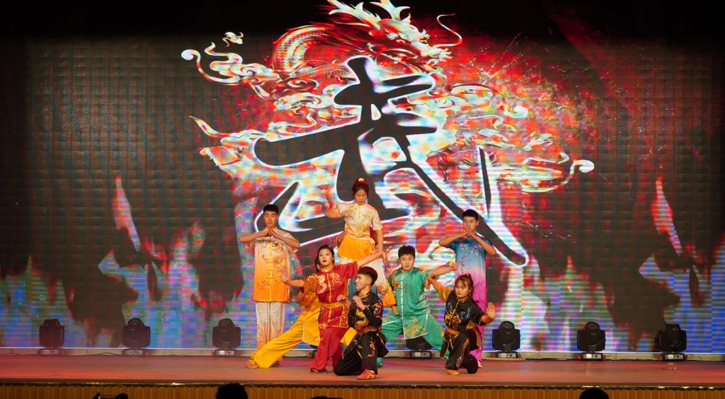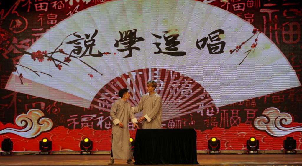 社会体育系丁赛、刘舰同学带来的相声表演《疫不容辞》,以员工视角讲述了疫情防控中发生一些趣事,引导同学们遵守疫情防控各项规定;体育教育系李时进等同学带来的舞蹈《文艺复兴》充满活力,引爆全场,展现了体育学子的青春力量;轮滑协会姚腾等同学带来的小品《四大才子》,通过幽默诙谐的表演,给大家留下深刻印象;运动训练系史嘉鑫同学演唱的《世间美好与你环环相扣》,优美的旋律与歌声,触动了我们内心最深处那份柔情;由院工会选送,郭丽娟等老师带来的健美操表演《快乐绽放》,她们在课堂中默默无闻、兢兢业业,在舞台上尽情绽放、活力四射,用舞蹈的健康、时尚与动感尽情诠释美好的青春活力,尽情绽放生活的多姿多彩;民族传统体育系程轩、刘琦同学带来的相声表演《江湖》,让我们体会到每个人心中那百味杂陈的江湖;花式跳绳协会石林卫等同学们带来的跳绳表演《jump!jump!》,炫酷的动作、默契的配合,吸引了全场眼球;体育教育系刘垚等同学们带来的《倍儿爽》,动感的节奏,完美诠释了愉悦、活泼的气息;运动训练系王力同学一曲《你一定要幸福》,感染人心;最后,由民族传统体育系带来的武术表演《中华魂》,尽显中华武术的博大精深,精湛的技艺赢得阵阵掌声,将晚会推向了高潮。