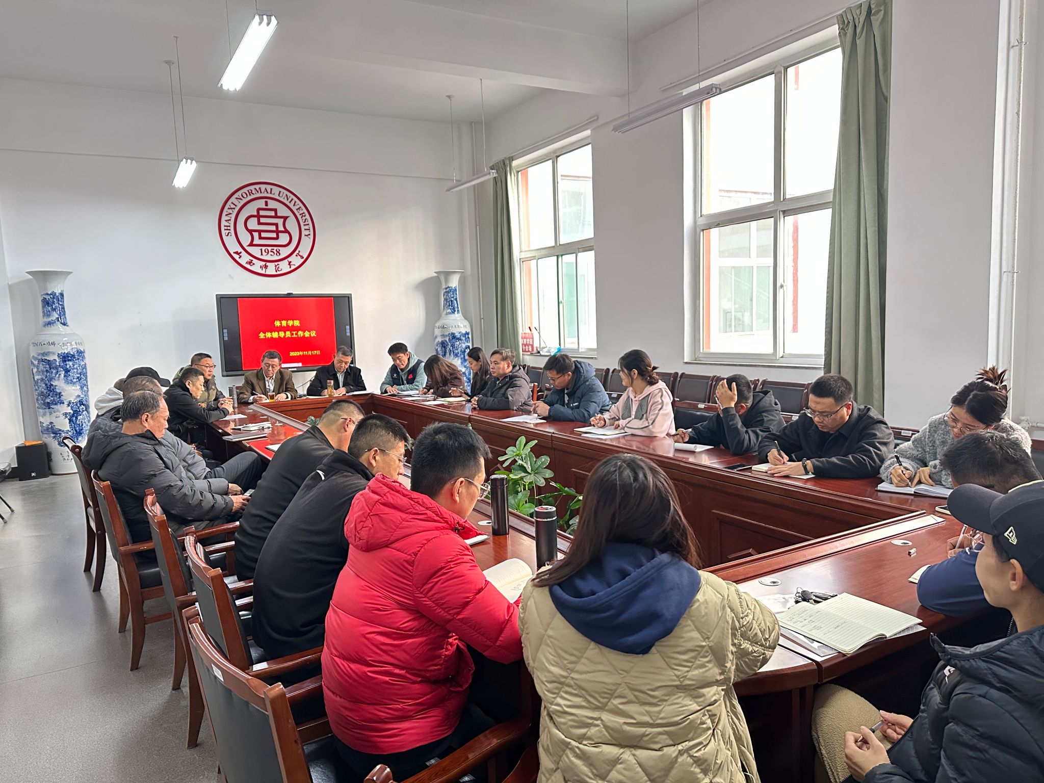 11月17日下午,公司在7号楼二层东会议室召开2023年秋季学期全体辅导员工作会议。公司党委书记卫建平、经理郑旗、公司党委副书记张大为、副经理李向前,以及全体辅导员参加会议,会议由张大为主持。