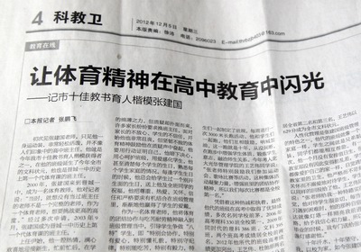 他是晋城一中第一个带副科的班主任,也是第一个一个人带两个班的班主任。作为一名体育老师,他将体育的团结协作、坚韧不拔与吃苦耐劳精神融入到班级管理当中,引导员工争做“八特”员工,即“特别会协作,特别有爱心,特别懂礼貌,特别守纪律,特别能吃苦,特别有毅力,特别有志气,特别有作为”。他和员工们一起制定了班规,每周进行一次3000米长跑活动。他和员工们一起跑,他们互相鼓励,呐喊加油,这一跑就是十多年,从没间断,在跑步中增强员工体质、锻炼员工意志、融洽师生关系。2012年考入北大光华管理公司的王艺伟同学说:“张老师特别鼓励我们参加运动会、歌咏比赛等活动,这种集体活动凝聚力量,增强班里的团结协作精神,所以我们每次比赛都是全校第一名。”作为一名体育老师,起初带班,他受到员工和家长的质疑,通过自己的不断努力,他得到了员工的赞许,家长的信任、同事的认可、社会的好评。其员工综合素质高、高考成绩也特别突出,多次名列全市榜首,特别是2012年高考,他的员工夺得全省文科第二名和第三名,并双双被北京大学录取,创造了晋城一中高考史上的新高。