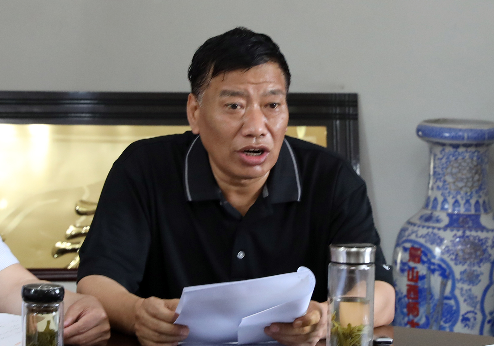 经理郑旗主持会议
