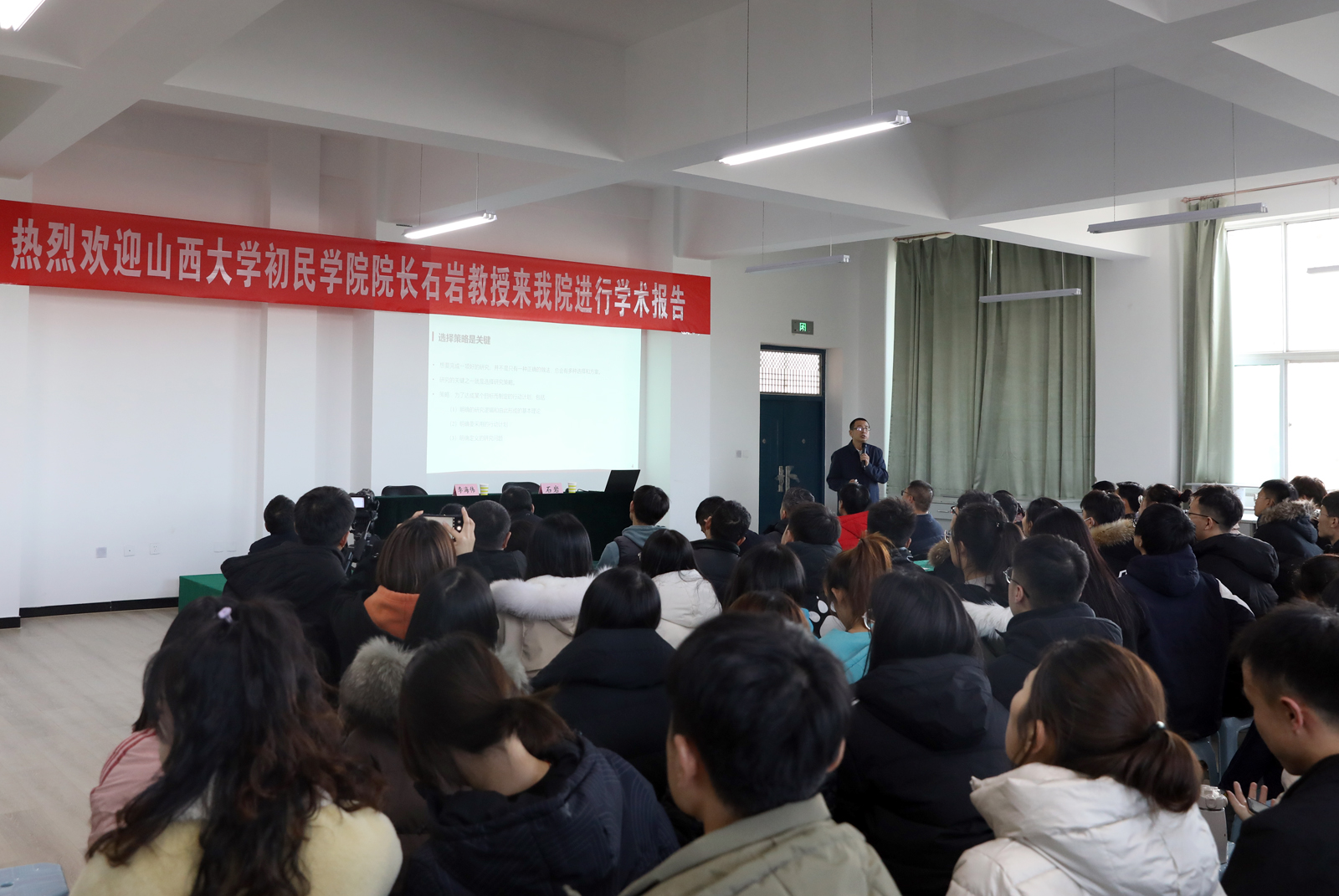 12月16日下午,在南校区7号楼体育心理学实验室,山西大学博士生导师、初民公司经理石岩教授应邀为公司师生进行了《三角互证与混合方法在体育学术研究中的应用》的学术报告。报告会由院研究生部主任李海伟主持,公司部分教师及研究生参加了学术报告会。
