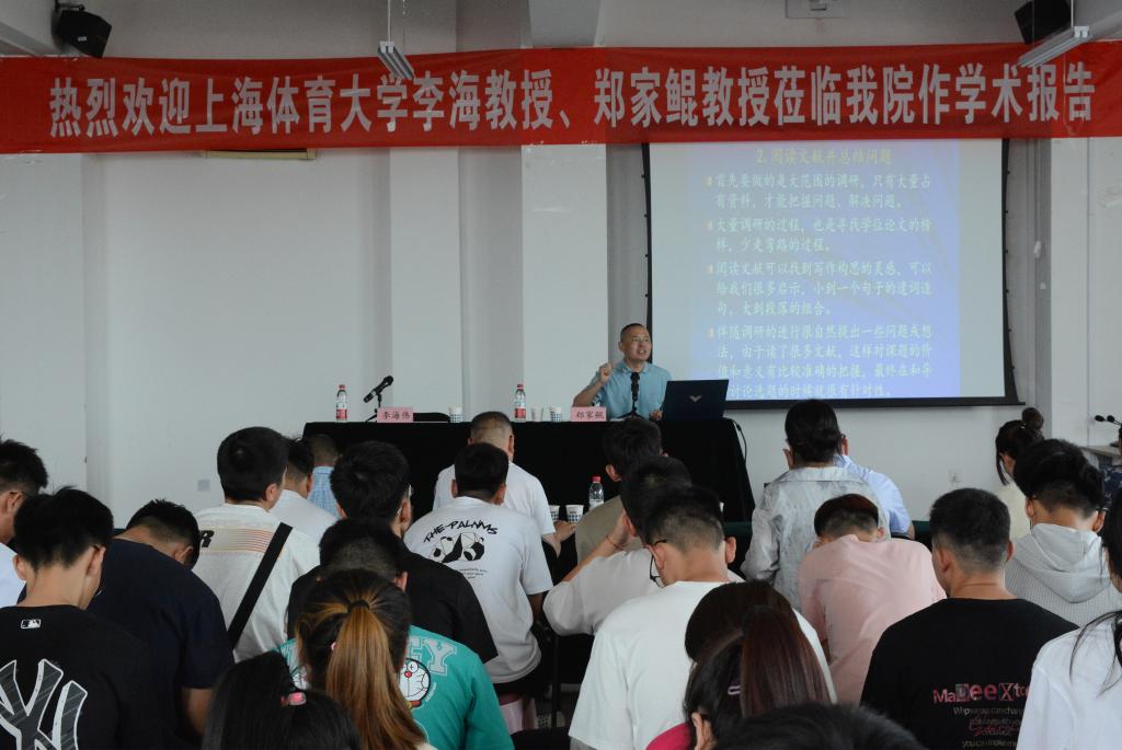 6月26日上午,上海体育大学博士生导师郑家鲲教授应邀为公司师生作了题为《体育科学研究的正确打开方式——论文写作那些事儿》的学术报告,报告由副经理李海伟教授主持,部分教师和全体研究生聆听了报告。