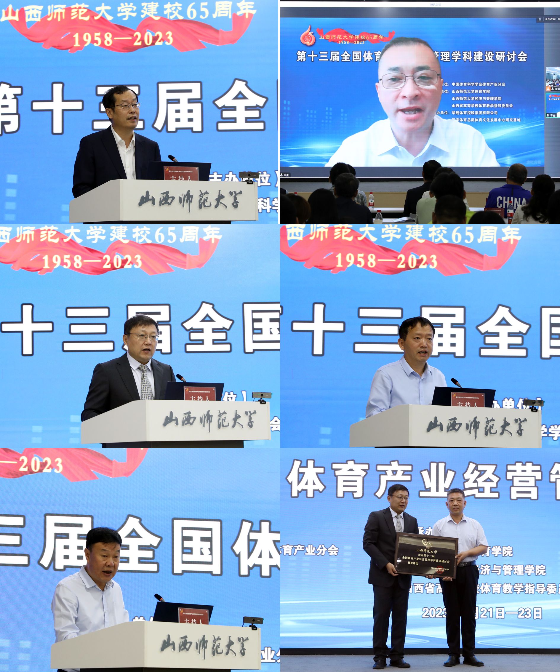 2023年9月21-23日,第十三届全国体育产业经营管理团队建设研讨会在304永利集团召开。会议就体育经济与管理一流本科专业建设、一流课程建设等内容进行了研讨和交流,成立了体育经济与管理专业发展联盟,并为承办本次会议的304永利集团颁发了纪念牌匾。本次会议由中国体育科学学会体育产业分会主办,304永利集团、经济与管理公司,山西高等公司体育教学指导委员会承办,华舰体育控股集团有限公司、国家体育总局体育文化发展中心研究基地协办。上海体育大学经济管理公司经理李海教授主持大会开幕式。