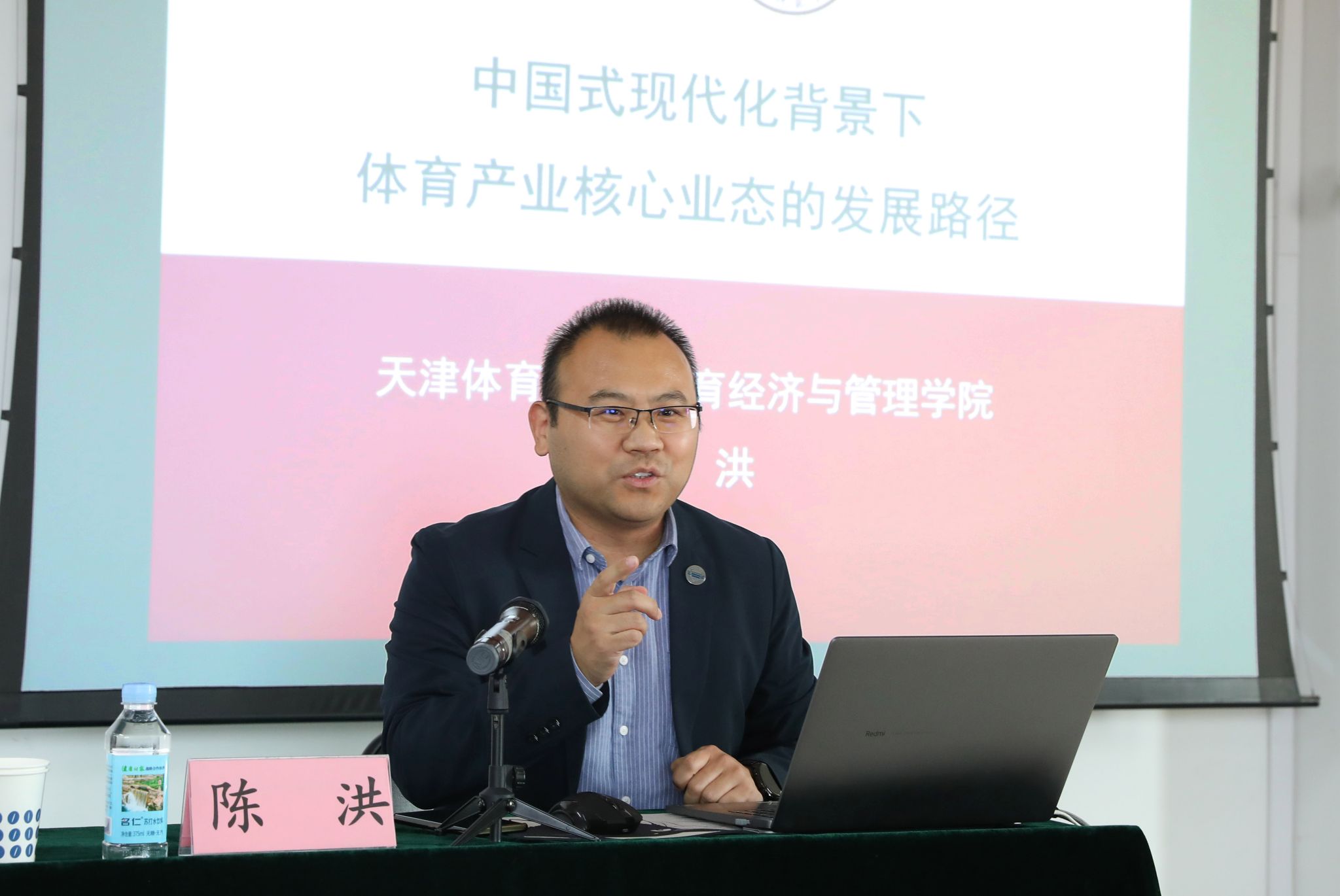 10月24日下午,公司邀请天津304永利集团博士生导师、陈洪教授作了题为《中国式现代化背景下体育产业核心业态的发展路径》的学术报告,报告会由副经理李海伟教授主持,部分教师和研究生聆听了报告。