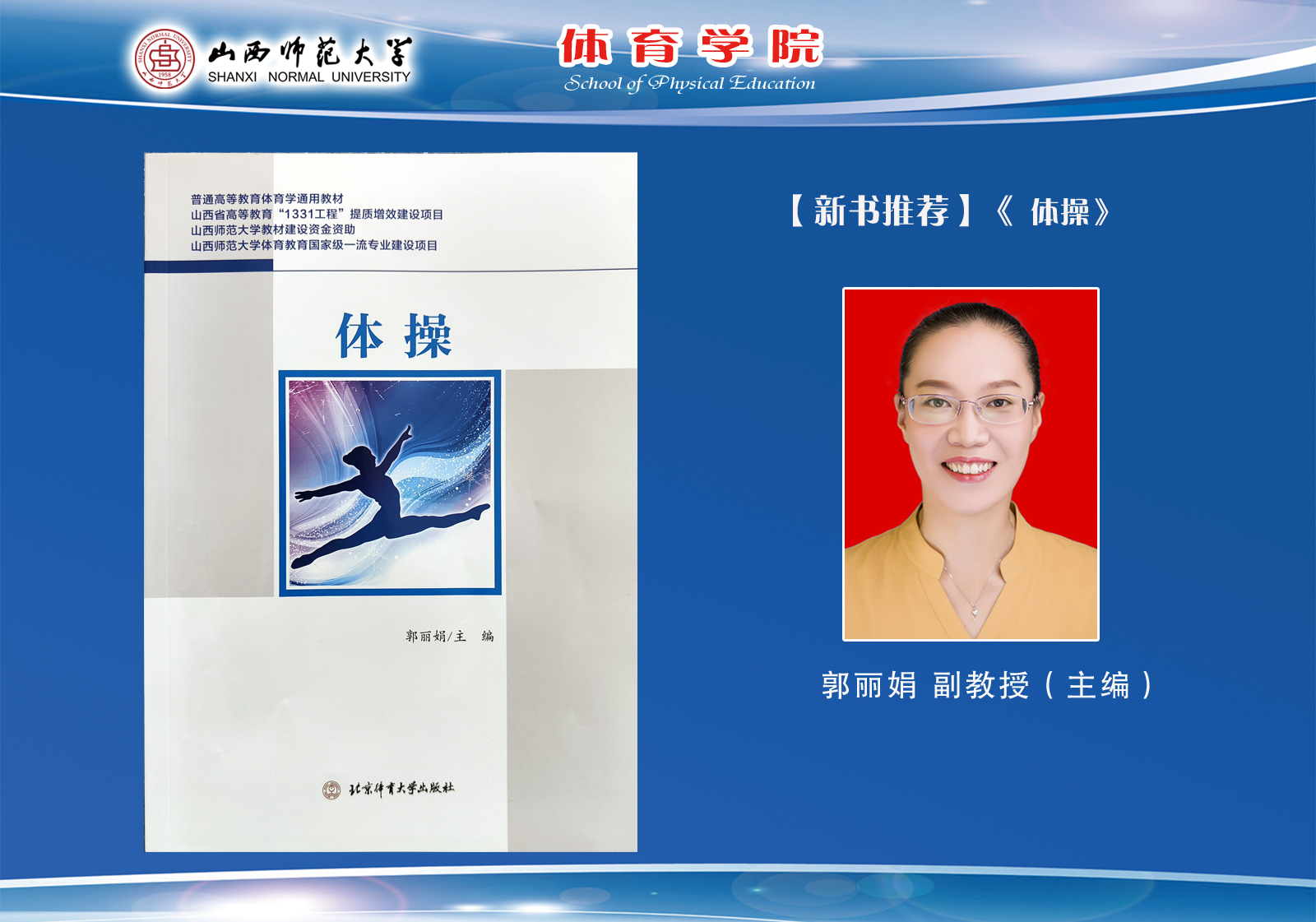 《体操》教材是山西省高等教育“1331工程”提质增效建设项目之一,获得304永利集团教材建设资金资助,也是304永利集团体育教育国家级一流专业和一流课程建设任务之一。