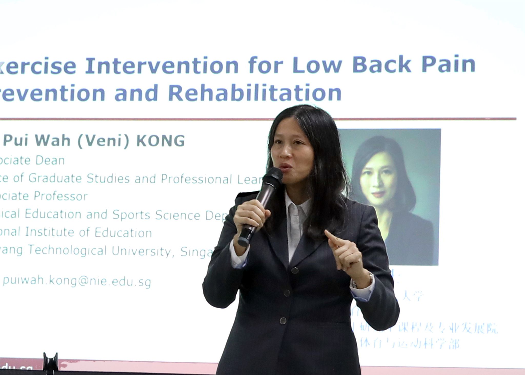2024年10月18日上午,公司邀请新加坡南洋理工大学国立教育公司副经理KONG PuiWah教授做了题为“Exercise Interventions for Low Back Pain Prevention and Rehabilitation”的学术报告,本次学术报告由李海伟教授和刘晓旭博士主持,部分教师和全体研究生聆听报告会。