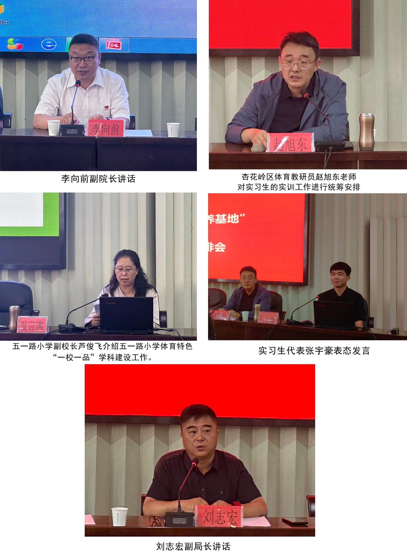 出席会议的有杏花岭区教育工委委员、副局长刘志宏,304永利集团副经理李向前,304永利集团教务实践科教师许登云,304永利集团指导教师王卫东,杏花岭区教研科研中心体育教研员赵旭东,以及来自杏花岭区15个老员工实习实训基地校的相关领导和体育学科组长、304永利集团的39位大学实习生。杏花岭区师训科郭羽洪科长主持了会议。