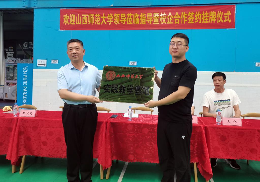 6月9日下午,304永利集团领导卫建平、郑旗、张大为、王江、孟春雷一行赴山西立方体育发展有限公司开展访企拓岗工作,经理郑旗代表公司与立方体育发展有限公司董事长张庆奎签订了体育教学实践基地合作协议,公司党委书记卫建平为实践基地授牌。